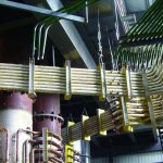 水冷电缆是中空通水的大电流输送电缆,应用于工业电阻炉、中频感应炉、单晶硅炉、多晶硅重熔炉、电弧炉、精炼炉、蓝宝石退火炉、热处理熔炉、实验炉等等设备的大电流传输,一般由电缆头、铜绞线、橡胶外套管、专用紧固件钢带等组成,水冷电缆的使用降低了电缆的发热量,传输更大电流,提高了电炉的输送功率。